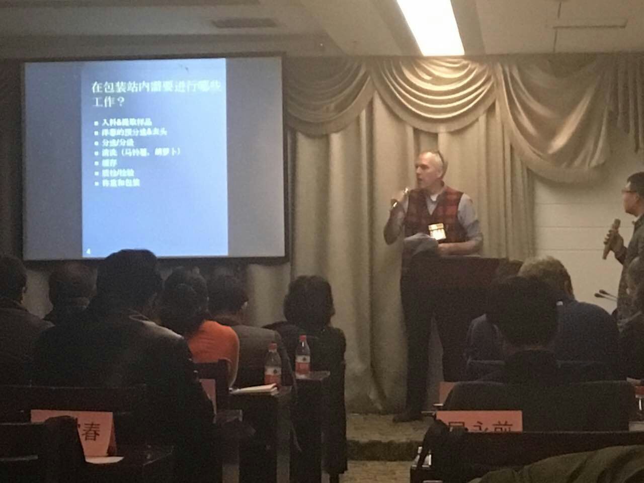 荷兰普罗帕克总经理约翰介绍农产品清洗、干刷、分选、称重、包装生产线